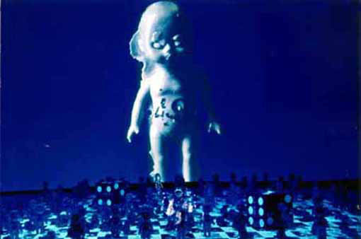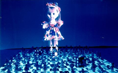 하나의 인형과 인형을 복제한 수많은 플라스틱 인형들을 설치하고 인형과 복제한 이미지를 슬라이드로 프로젝션 하여 벽에 투사 하였다. 형광빛을 이용하여 야광효과를 더하였다.