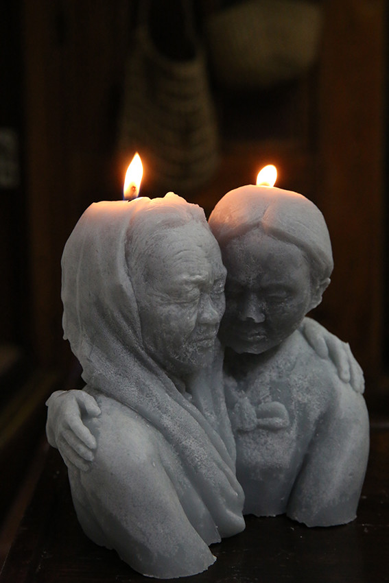 이 양초의 형상은 김윤님이 민청학련사건의 유일한 여성으로 서대문 형문소(서울구치소)에 수감 되었다가 다음해에 형집행정지를 받고서 출소하여 서대문 형무소 앞에서 어머니 김한림선생님과 얼싸안는 장면이다.