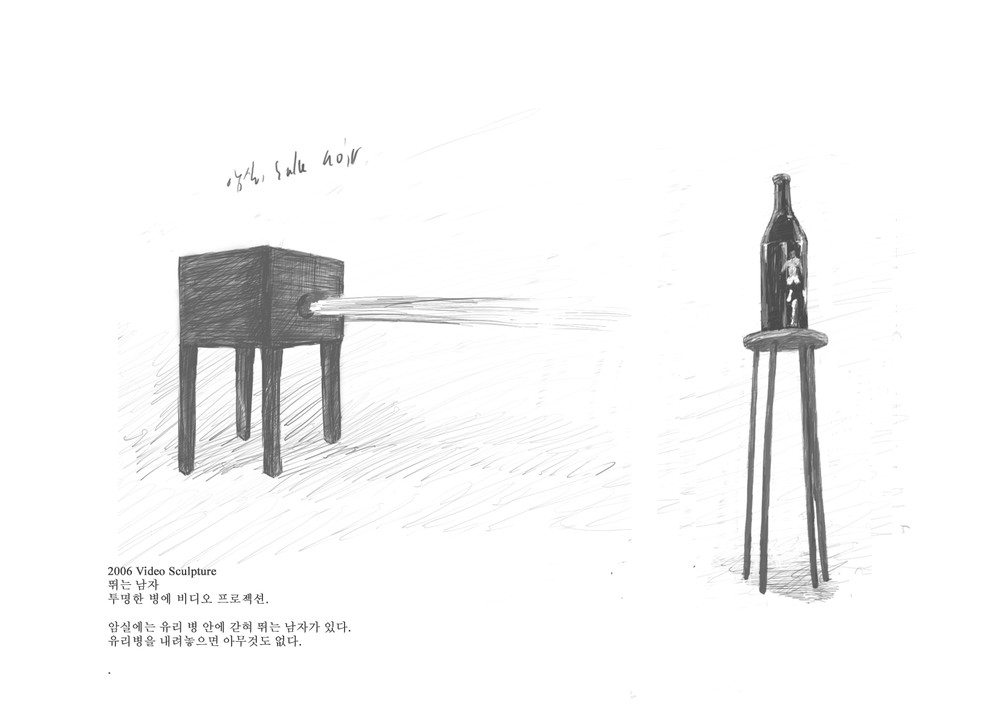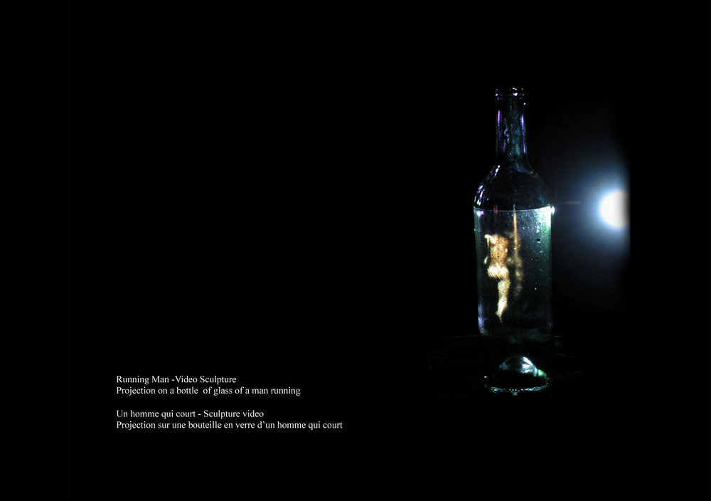 암실에는 유리 병 안에 갇혀 거친 숨소리로 뛰는 남자가 있다. 병을 내려 놓자 소리만 있고 어둠만이 남는다.
