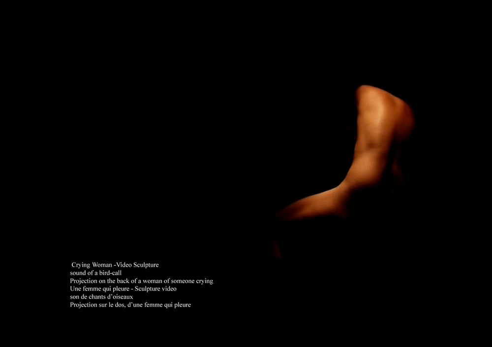 여자가 의자위에 앉으면 흐느끼고 있는 여자의 뒷모습이 등 위로 투사된다.